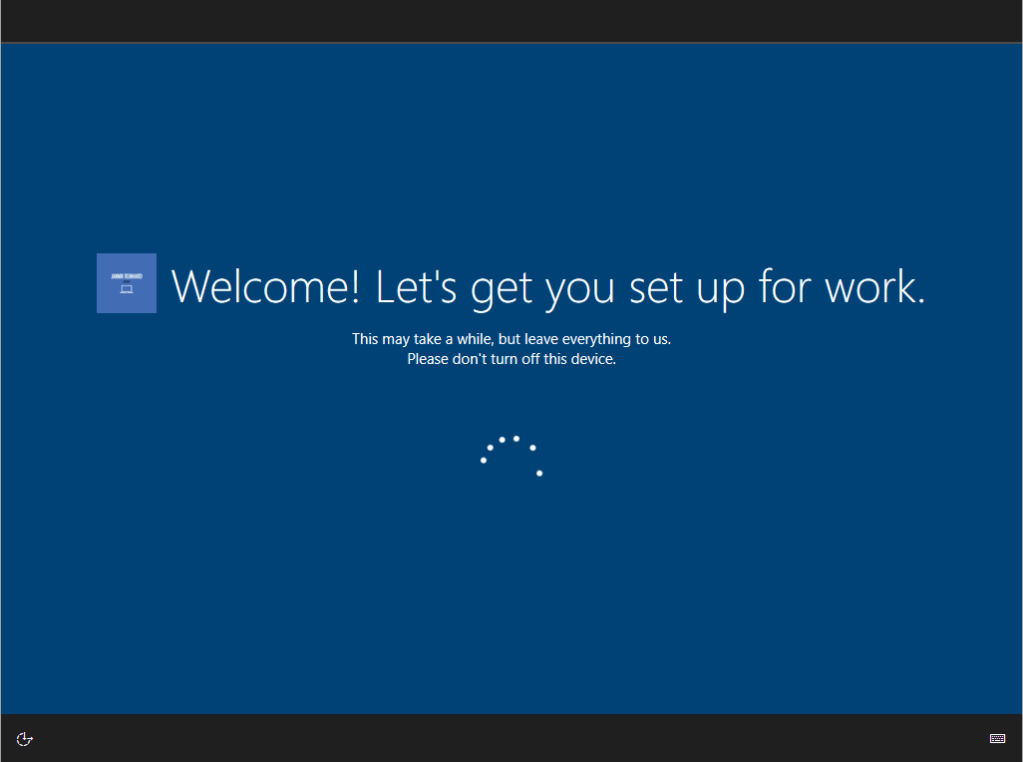 What we notice is that no authendification is necessary for the autopilot process like on a standard PC, the process starts directly. This is the self deploying we have configured in the deployment profile.