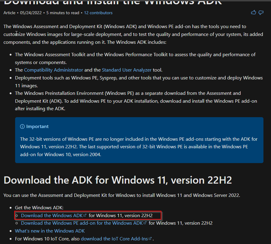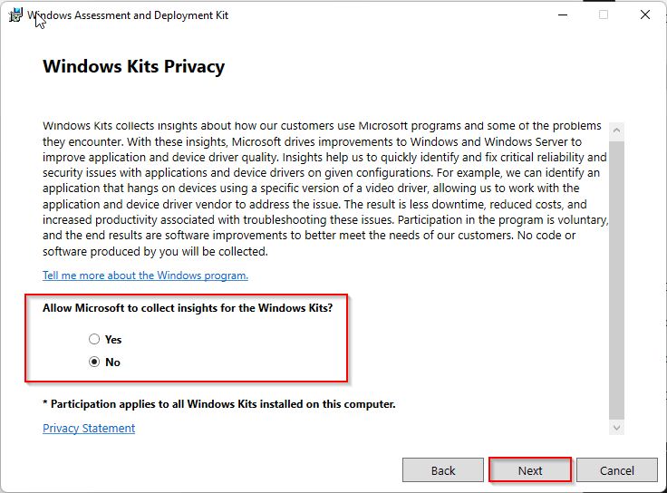 We need a tool that helps us decode the hardware hash. For this we need to install the Windows ADK.