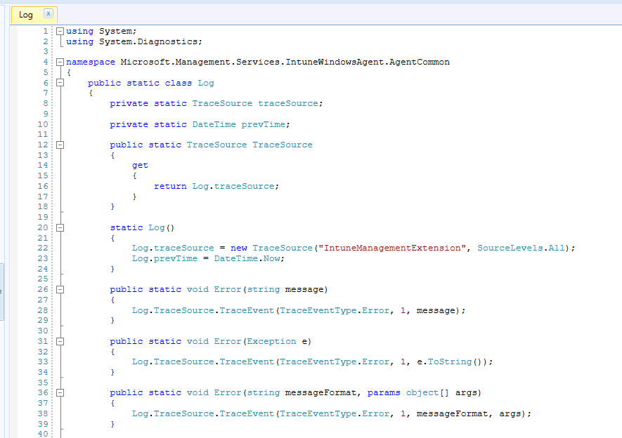 To write the script I first have to find out what log levels actually exist. Since there is no documentation for this, let alone this is self-explanatory, I have to find a way to get to the values. Where better to find this information than directly in the code of the IME. The Ime is C# compiled code, so I started looking for a C# decompiler and found it with JustDecompile. I downloaded this and installed it on my system.