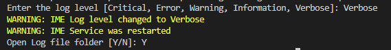 I reset it by running “Change-ImeLoglevel” then put “information”. same error.