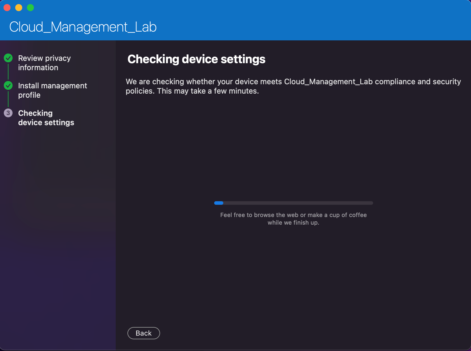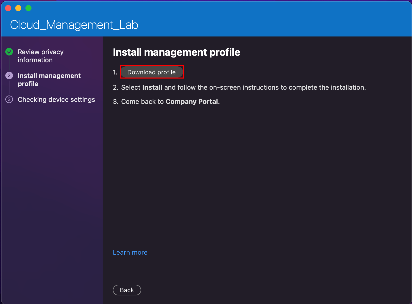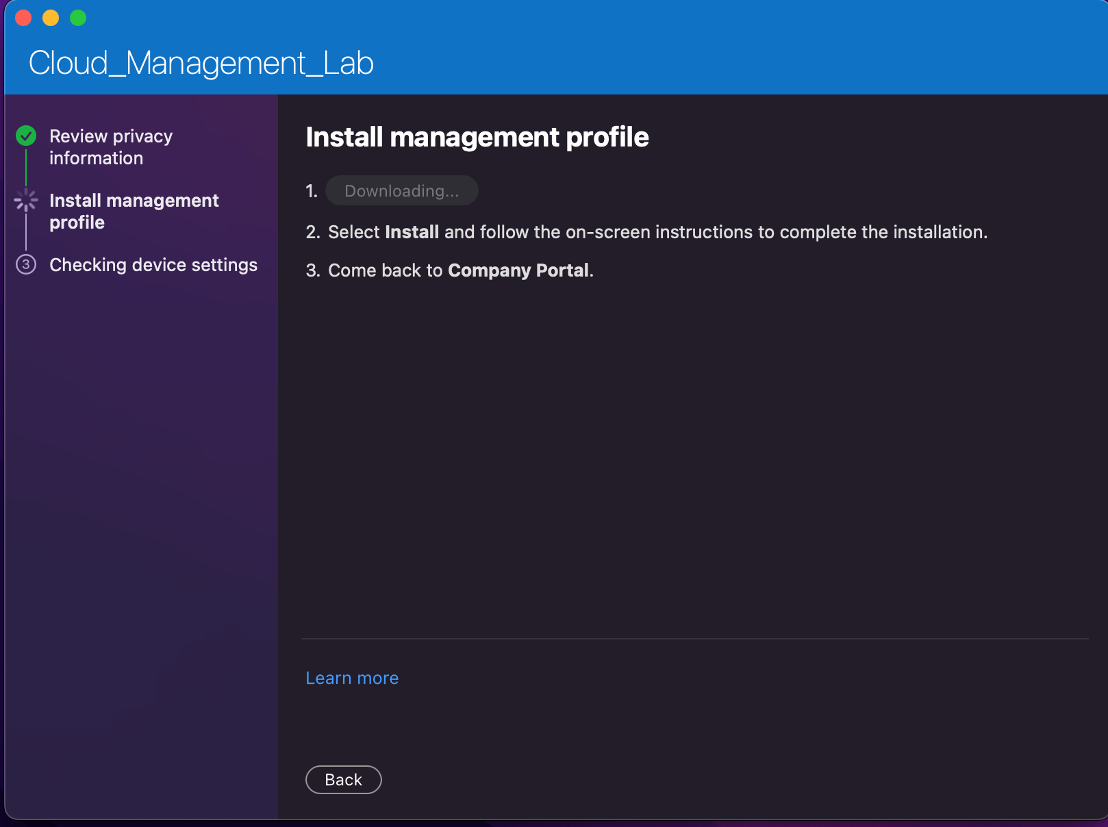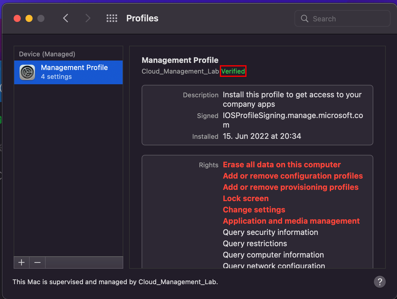 The user-approved enrollment process requires several manual steps. However, these are basically quite simple and should be doable by any end user. As mentioned above, the experience is much better when the enrollment is performed as automated device enrollment with user affinity. Here you also have the possibility to install the Company Portal via script directly. How you can configure the automated device enrollment and how the whole thing looks is explained very well in the blog of Hubert Maslowski.