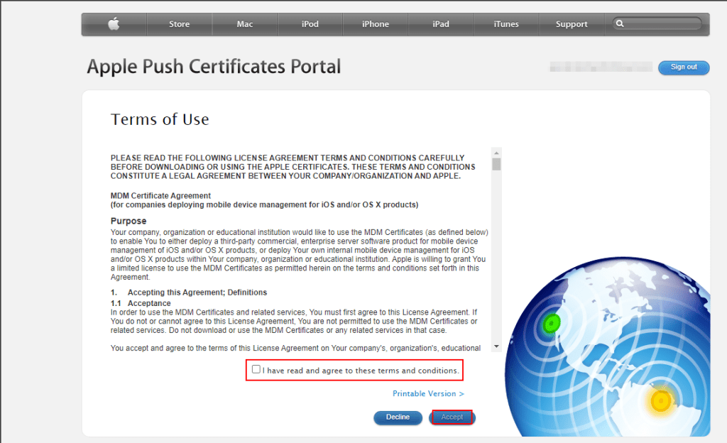 • Activate I Agree (I grant Microsoft permission to send both user and device information to Apple).