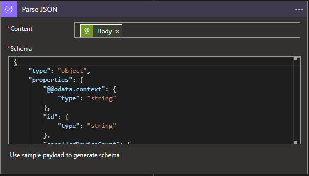 - Windows: @{body('Parse_JSON')?['deviceOperatingSystemSummary']?['windowsCount']}