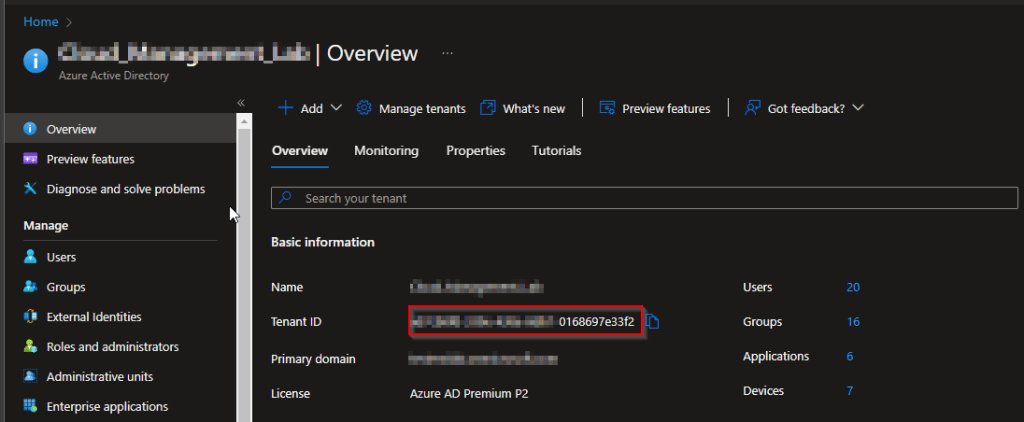 - Add your TenantId. You can find this ID in the Azure Active Directory.