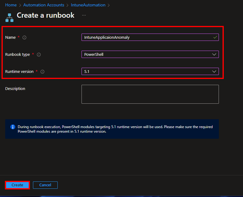 - Select PowerShell as Runbook type