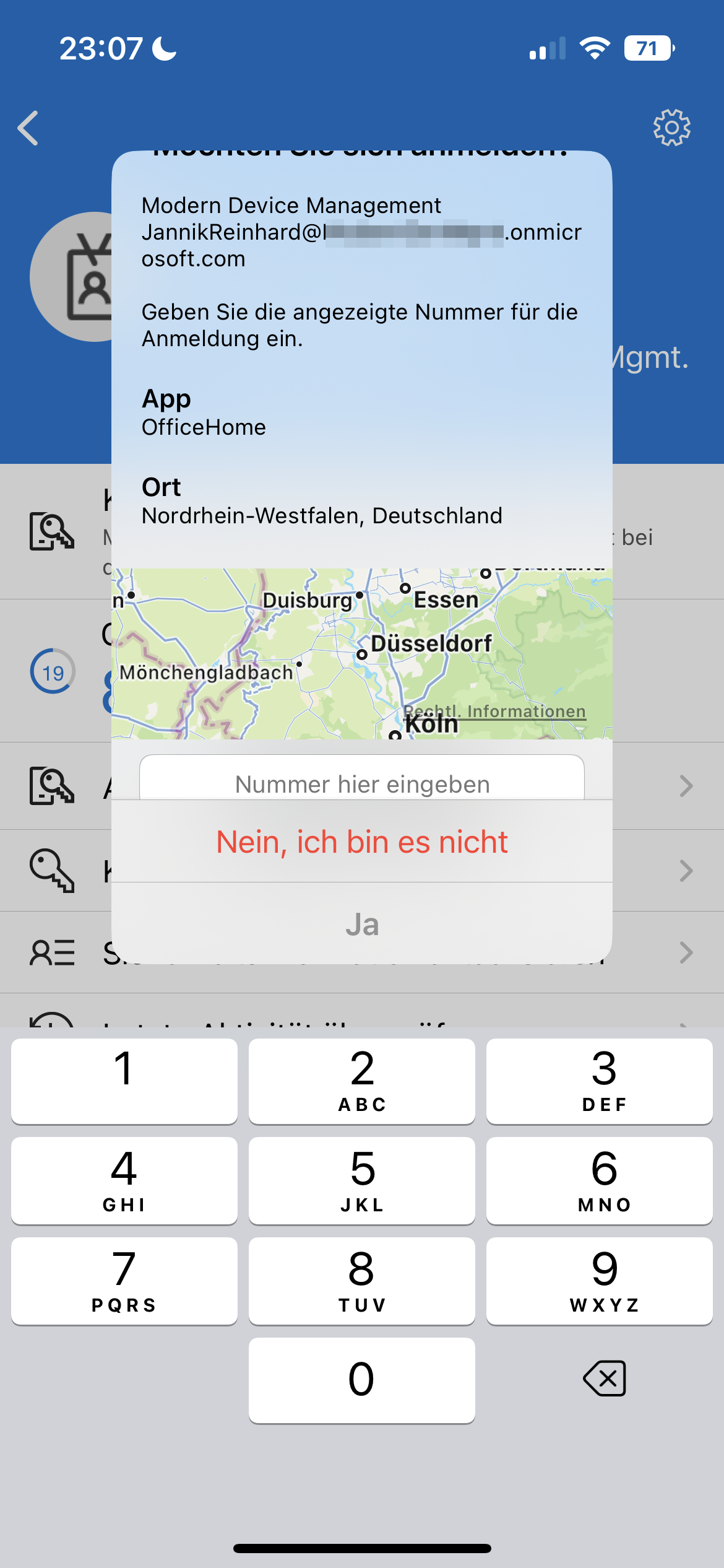 • You see a map where the authentication request come from