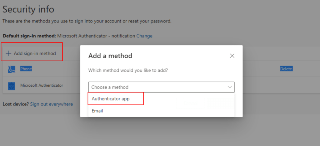 • Select Microsoft Authenticator