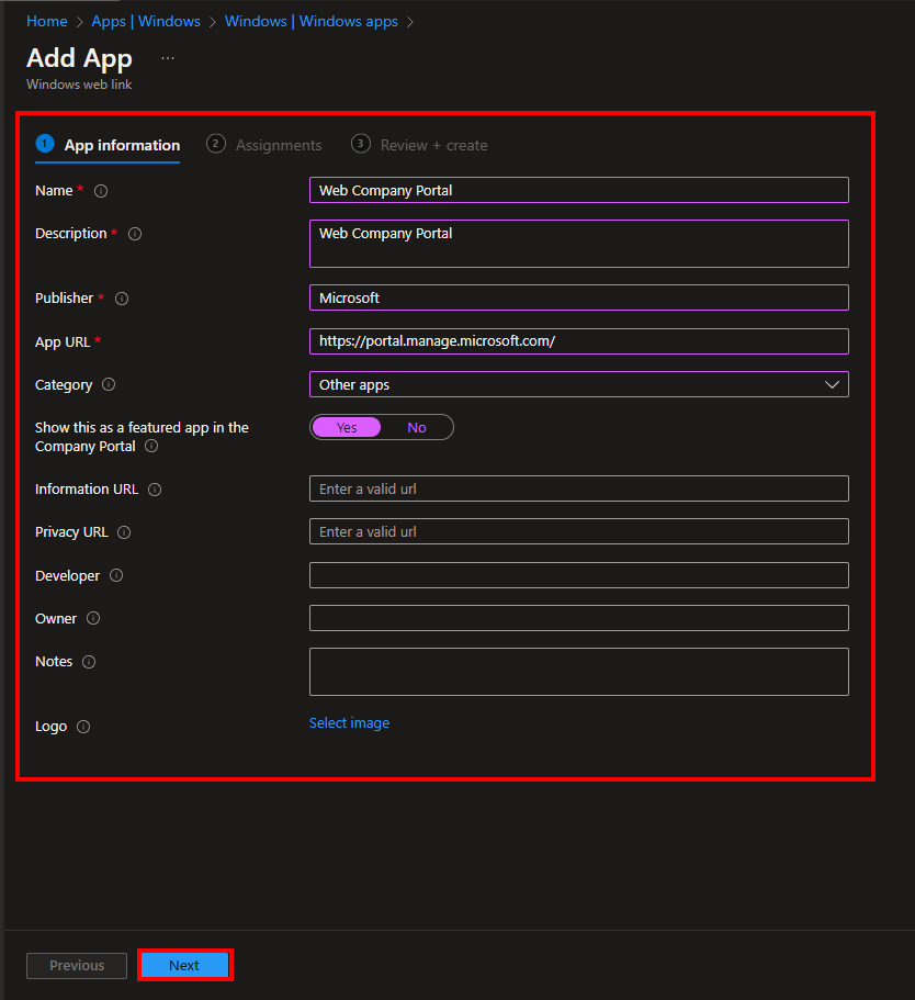 Two new app types have been added to Intune: “iOS/iPadOS Web Clip” and “Windows Web Link“. This allows shortcuts to websites similar to “Web Link” to be distributed with intune Intune. The difference is that this does not apply platform wide and can be assigned via groups and filters… I’m going to show you how this works: