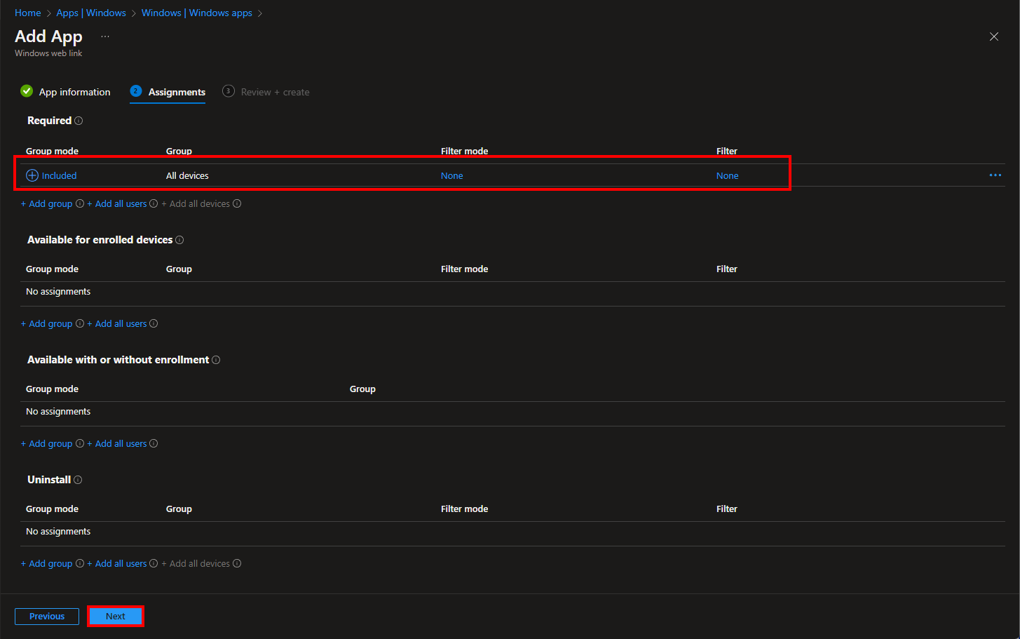 Assign compliance policies to the All devices group