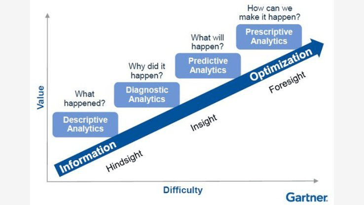 There are several levels of analytics. The simplest type of analytics is also called descriptive where you look into the past e.g. via simple reports and can understand what happened. But there are also more advanced types like predictive and prescriptive. Prescriptive is in my opinion still very far away but the topic predictive analytics is becoming more and more important. We want to make forecasting and detect errors before they occur or before they become significant.
