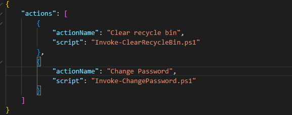 To add self service actions you have to place the Powershell script in the script folder and add to the “_actions.json” the action name and the script name.