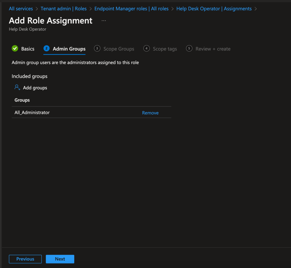 - Navigate to Tenant administration -> Roles -> Help Desk Operator