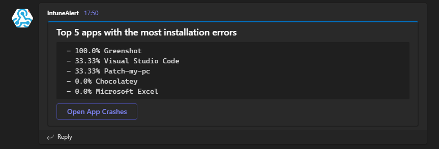 It is always important as an Intune admin to have an overview of the environment. Intune offers a lot of reports but as we all know you don’t look into them every day. Isn’t it easier to get a daily or weekly message in Teams and see the top failed app installation. I have already released some blogs with the topic of detecting anomalies in Intune with the help of cognitive services. In this blog I want to show you how to send a report that is already available in Intune to Teams using Azure Automation.